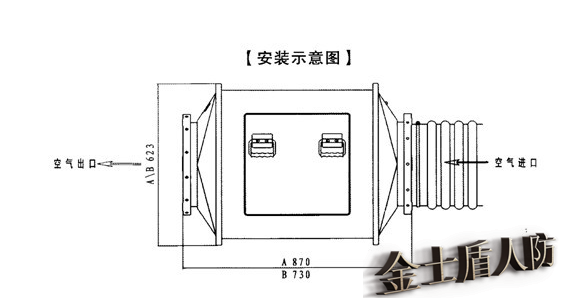 安装与平战结合工事的滤毒通风系统中,通过自由基激发器、精滤器、滤毒器除去空气中的化学毒剂,生物战剂和放射性灰尘,杀灭截留在精滤器单元上的微生物细菌,防止生物战剂大量繁殖或发生迁移,向工事内提供清洁的空气。