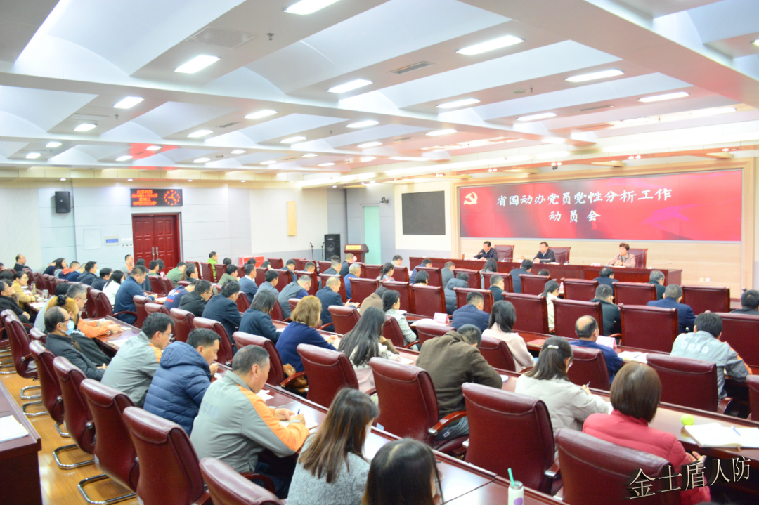 会议由党组成员、副主任陈霞主持,党组成员、副主任熊志强同志宣读了《河南省国防动员办公室党员党性分析工作实施方案》,党组书记、主任谷文峰同志作动员讲话。