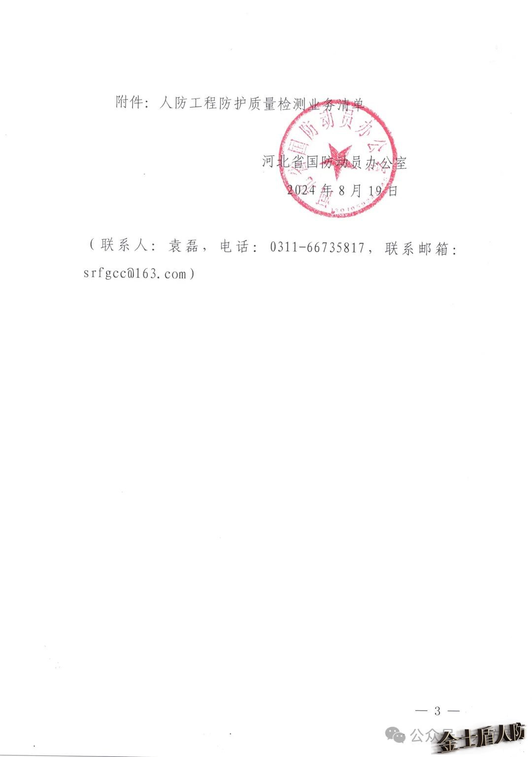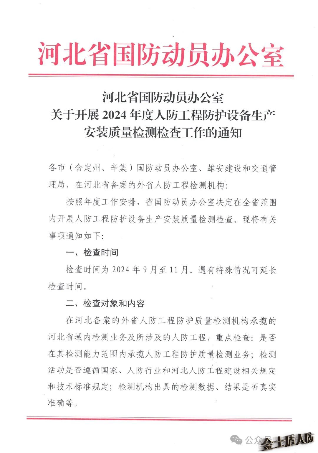 河北省国防动员办公室关于开展2024年度人防工程